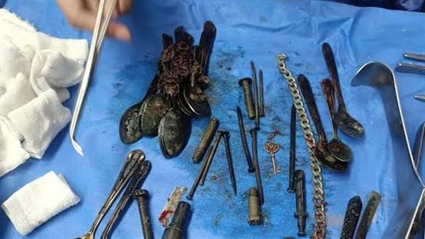 استخراج طقم ملاعق وانسيال ومسامير من بطن مريض في المنوفية