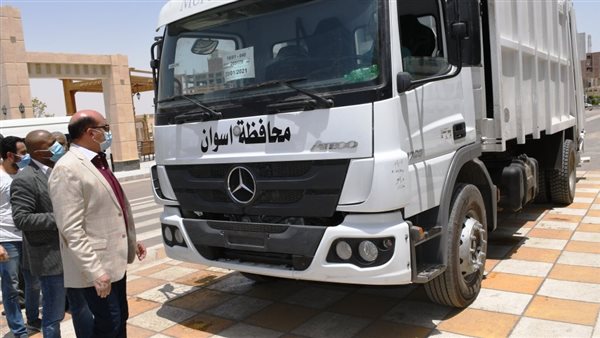 محافظ أسوان يتفقد معدات وسيارات النظافة الجديدة