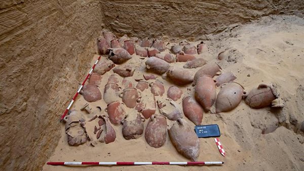 كشف أثري جديد يضم خبيئة لمواد التحنيط في أبو صير تعود للأسرة 26