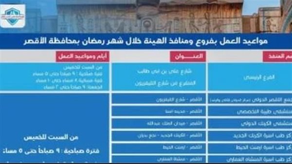 الهيئة العامة للتأمين الصحي الشامل بالأقصر تعلن مواعيد العمل خلال شهر رمضان