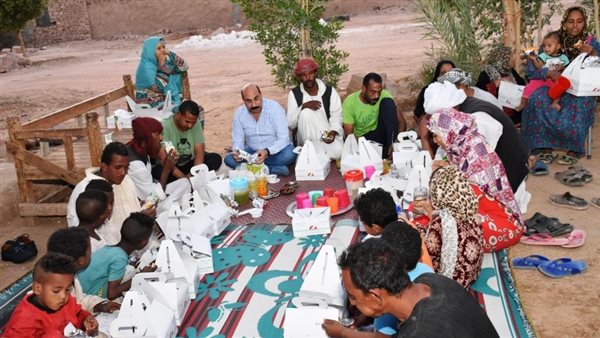 محافظ أسوان يشارك أهالي العطوانى بإدفو إفطار رمضان بقافلة مساعدات غذائية