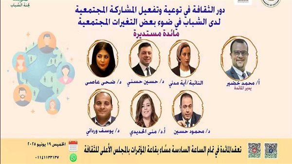 غدا ندوة "دور الثقافة في تفعيل المشاركة المجتمعية لدى الشباب" بالأعلى للثقافة