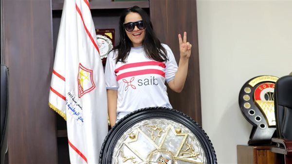 راندا البحيري تزور نادي الزمالك وتلتقط صورا مع درع الدوري
