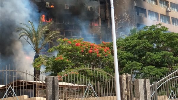 حريق هائل في مبنى من 7 طوابق بـ15مايو والدفع بـ14 سيارة إطفاء