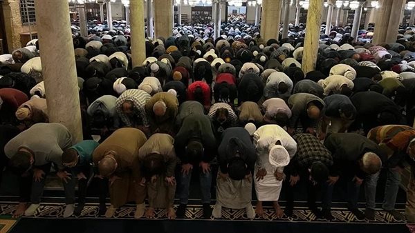آلاف المصلين يتوافدون لصلاة العشاء والتراويح بالجامع الأزهر