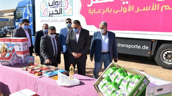 لحظة وصول قافلة «أبواب الخير» للمساعدات الإنسانية إلى الوادي الجديد.. صور