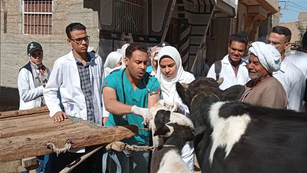 قافلة جامعة سوهاج البيطرية تناظر 695 حالة بقرية أولاد مامن.. صور