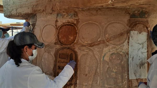 استئناف أعمال ترميم أعمدة الصالة الكبرى في معابد الكرنك.. صور