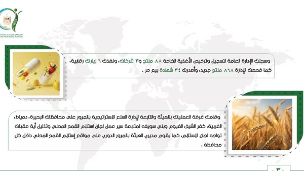 بالإنفوجراف.. «سلامة الغذاء» يواصل حملاته على المنشآت الغذائية ويوافق على تصدير 3600 رسالة