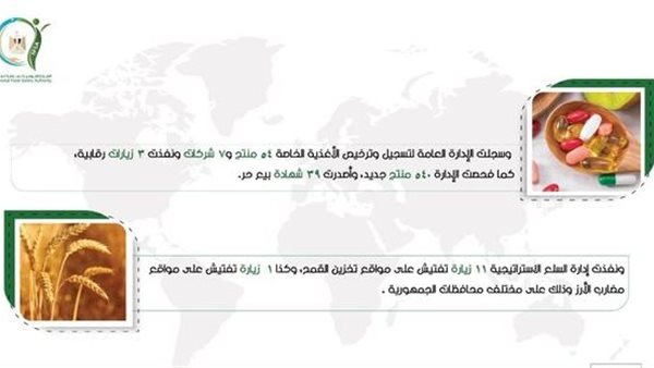 «سلامة الغذاء»: 3700 رسالة غذائية مصدرة و1910 واردة ومعاينة 12 مخزن للتغذية المدرسية خلال أسبوع