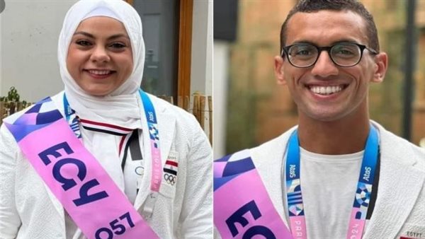 رحاب أحمد وعلى الزيني يرفعان علم مصر في طابور عرض بارالمبياد باريس