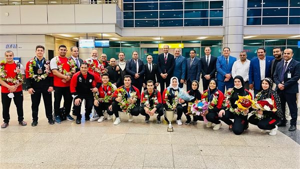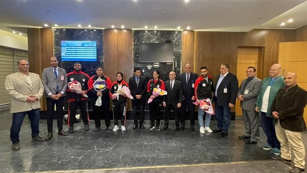 وزير الرياضة يستقبل بعثة مصر لرفع الأثقال بمطار القاهرة