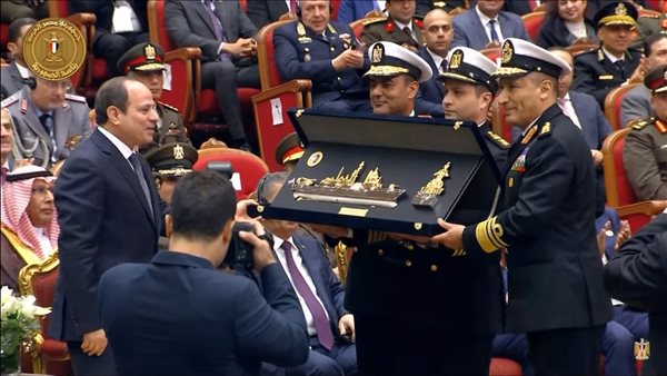 الرئيس السيسي يتسلم درع الفرقاطة المصرية «الجبار» خلال افتتاح معرض «إيديكس 2023»