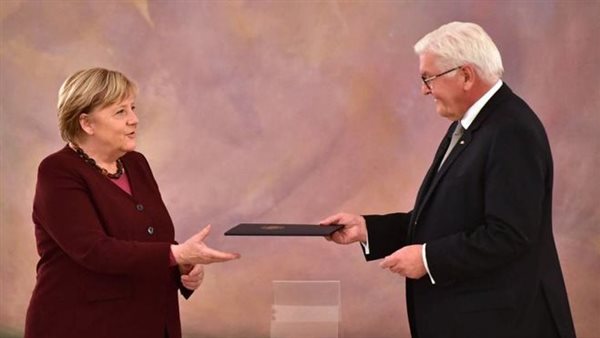 رئيس ألمانيا يسلم المستشارة أنجيلا ميركل شهادة الإعفاء من منصبها