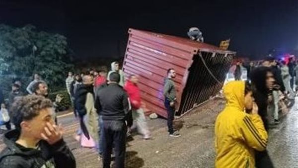 مصرع شخص انقلبت عليه سيارة نقل كونتينر على طريق أجا ميت غمر بالدقهلية