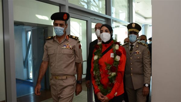 استقبال حافل من القوات المسلحة لـ فريال أشرف عقب عودتها بذهبية الأولمبياد