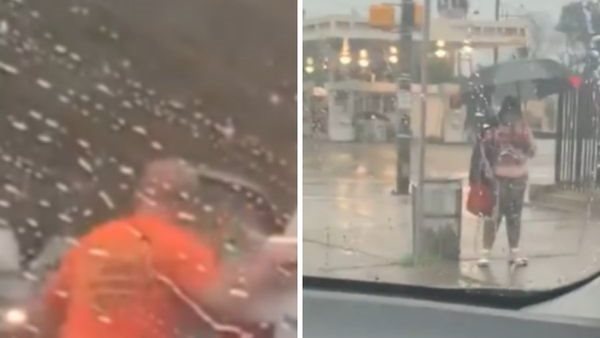 رجل ينقذ فتاة من سيول الأمطار.. شاهد ماذا فعل (فيديو)
