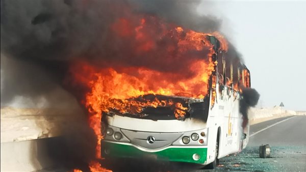 اندلاع حريق هائل فى أتوبيس يحمل 46 راكبا على صحراوي غرب الأقصر
