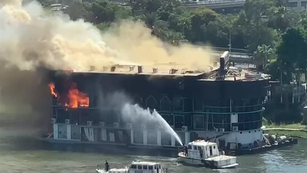 فيديو | حريق هائل بمركب نيلي في الزمالك.. والحماية المدنية تحاول السيطرة