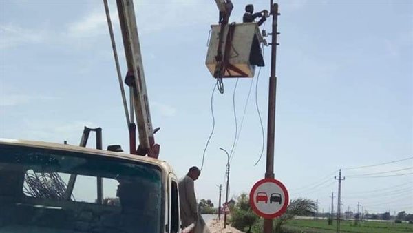 حملات متواصلة بالمنيا لصيانة أعمدة الإنارة وإزالة التعديات