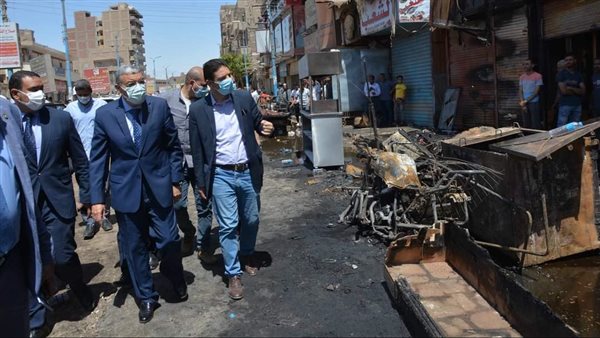 إصابة 24 حالة.. محافظ المنيا يتفقد موقع حريق نشب بمطعم بابوقرقاص.. صور