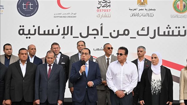 قبل انطلاقها.. رئيس الوزراء يتفقد قافلة صندوق تحيا مصر للمساعدات الإنسانية لأهل غزة