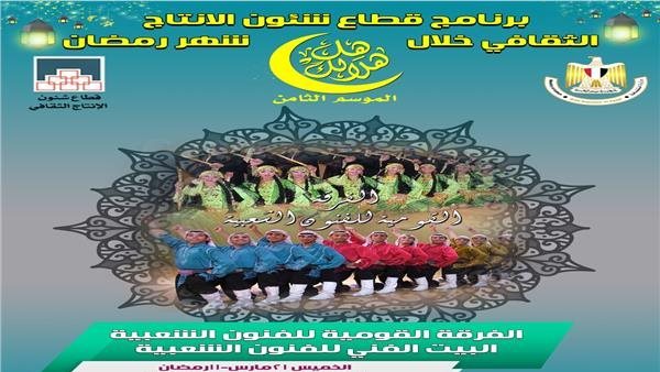 «فرقة رضا» تختتم اليوم برنامج «هل هلالك 8» بمركز الهناجر