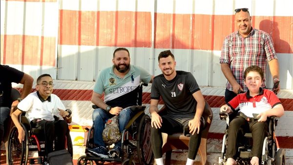 لاعبو الزمالك يلتقطون صورا تذكارية مع مشجعين من ذوي الهمم