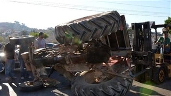 إصابة 4 أشخاص إثر تصادم جرار زراعي بتروسيكل في البحيرة