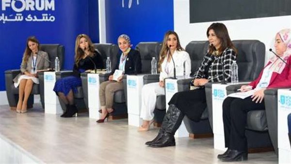 نبيلة مكرم وغادة والي تتفقدان جناح وزارة الهجرة بمنتدى شباب العالم