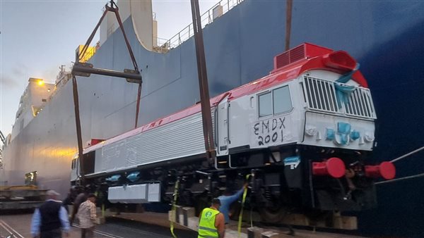 ميناء الإسكندرية يستقبل أول جرار أمريكي لجر القطارات الإسبانية الجديدة
