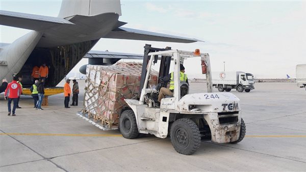الهلال الأحمر: 34 طائرة مساعدات إنسانية وإغاثية وصلت مطار العريش حتى الآن