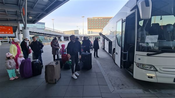 متطوعو الهلال الأحمر المصري يجهزون وسائل المواصلات لنقل الطلاب المصريين من أوكرانيا