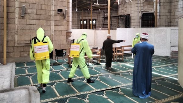 الهلال الأحمر بالسويس يعقم المساجد استعداد لصلاة عيد الفطر المبارك