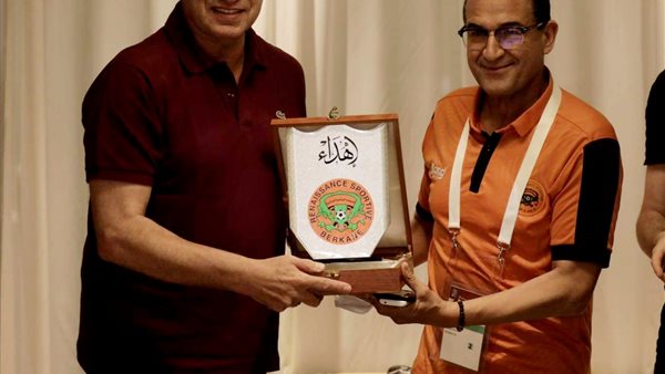السوبر الإفريقي.. رئيس بعثة نهضة بركان يهدي درع النادي للخطيب ويؤكد: نعتز بعلاقتنا مع الأهلي