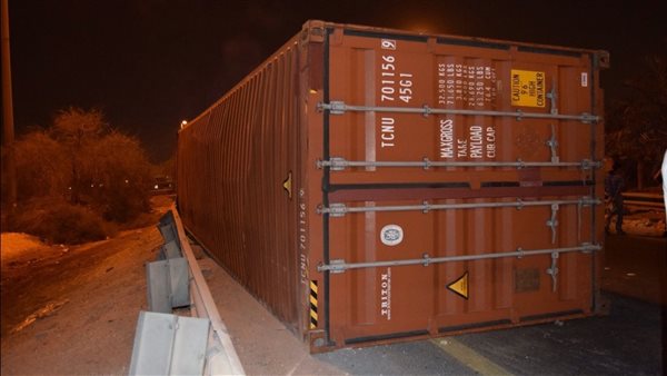 بعد سقوط «كونتنر» من سيارة نقل.. إعادة الحركة المرورية بطريق الزقازيق الإسماعيلية