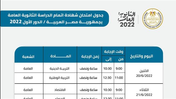 امتحانات الثانوية العامة 2022.. الجدول والمواعيد ونظام الامتحان