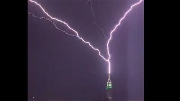 صاعقة البرق تضرب برج الساعة المطل على الحرم المكي.. فيديو