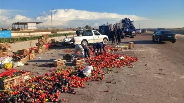 انقلاب سيارة محملة طماطم بطريق الإسكندرية الصحراوي وإصابة السائق والتباع
