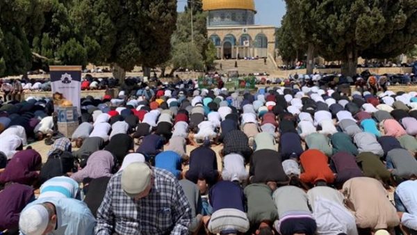 رغم قيود الاحتلال.. عشرات الآلاف من الفلسطينيين يؤدون صلاة الجمعة بالأقصى