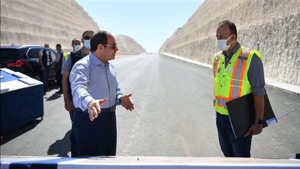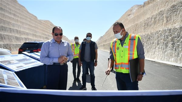 الرئيس السيسي يتفقد العمل بامتداد طريق وصلة أم القمر.. صور