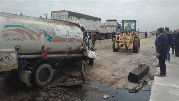حادث الطريق الإقليمي المروع.. تفاصيل اصطدام التريلا المحملة بالجاز بالميكروباص وسر «السائق النائم»
