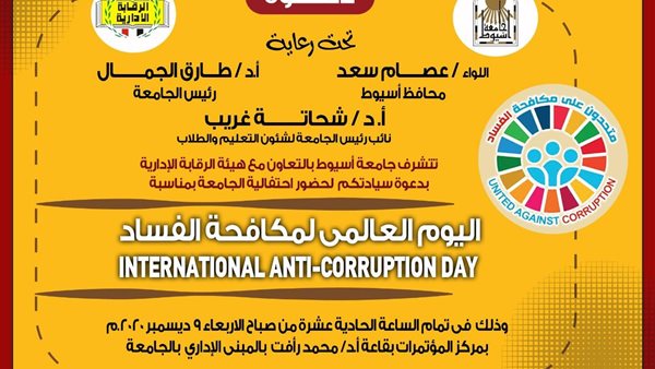 غدا.. جامعة أسيوط تحتفل باليوم العالمي لمكافحة الفساد