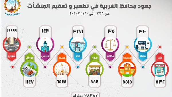 محافظة الغربية: تطهير وتعقيم 38 ألفا و384 منشأة
