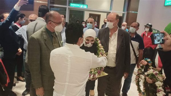 استقبال وزير الرياضة لبطلة مصر جيانا فاروق بمطار القاهرة