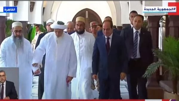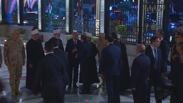 شيخ الأزهر والمفتي ووزير الأوقاف يستقبلون الرئيس السيسي بمسجد السيدة نفيسة