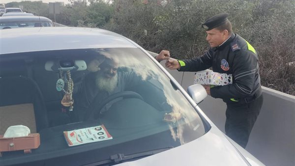 الداخلية توزيع الورود والشيكولاتة علي قائدي السيارات احتفالا بعيد الشرطة