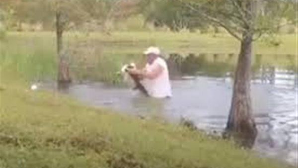 موقف إنساني.. رجل ينقذ كلبا من فم التمساح