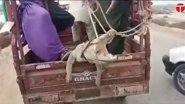 قرويون يقتلون تمساحًا بالفأس بسبب الماعز في باكستان.. فيديو