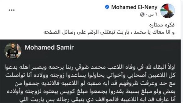 محمد النني يدعم مبادرة لمساندة عائلة لاعب فريق كفر الشيخ الراحل
